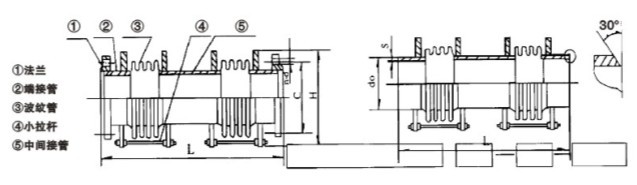 JXH型小拉桿橫向波紋補償器,由兩段波紋管,中間接管及帶有限位螺母的小拉桿等零件組成。小拉桿不能承受內壓推理。JXH型小拉桿橫向波紋補償器可以補償彎曲管段的橫向位移和角項位移,同時可以補償軸向位移。JXH型小拉…